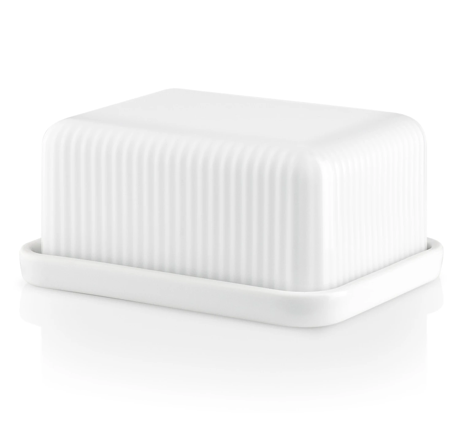 Deze botervloot van Eva Solo is afkomstig uit de Eva Trio Legio Nova collectie en is gemaakt van een hoge kwalitateit porselein. Het geribbelde design is vernieuwend en fris en de pot kan op twee verschillende manieren staan. Het product kan ook gebruikt worden voor andere doeleinden zoals opslag van kleine voorwerpen.
