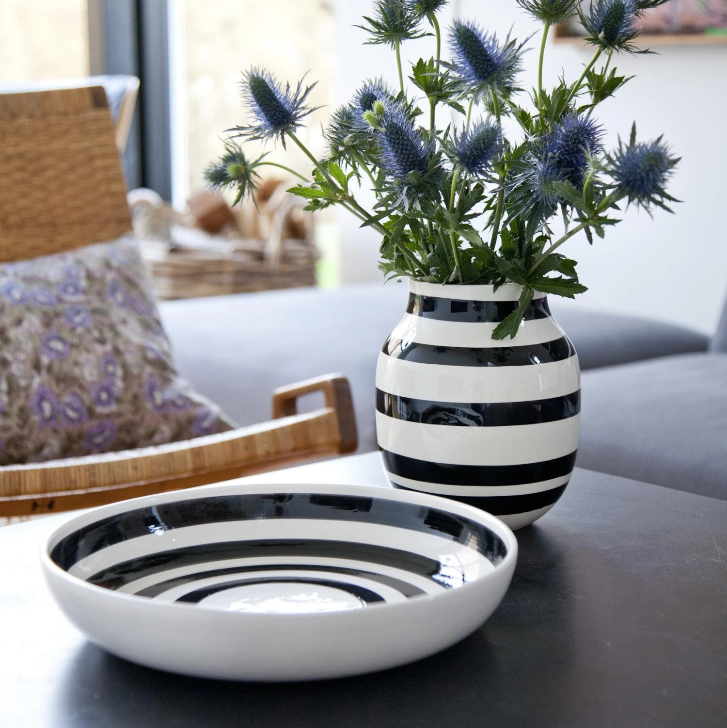 De stijlvolle Omaggio serveerschaal is ontworpen door Ditte Reckweg en Jelena Schou Nordentoft voor het Deense merk Kähler. De schaal is gemaakt van keramiek en heeft een klassiek met de hand geschilderd gestreept patroon. Keuze uit verschillende kleuren.